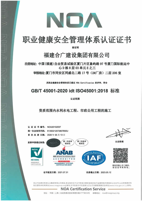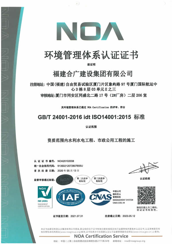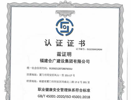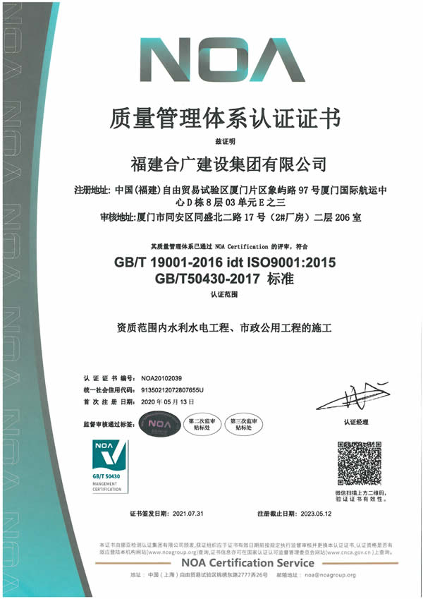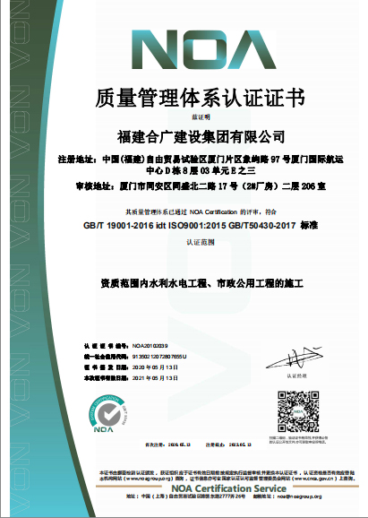 福建合廣建設(shè)集團(tuán)有限公司,注冊(cè)資本5188萬(wàn)元人民幣,公司位于廈門市同安區(qū)鳳山一里151-17號(hào)。本公司成立于2013年,公司具備市政公用工程、水利水電工程、房屋建筑工程、公路工程、園林綠化等多專業(yè)施工資質(zhì)。企業(yè)從業(yè)人員100多人,各類專業(yè)技術(shù)人員70多人,其中高級(jí)職稱8人,中級(jí)職稱40多人,一級(jí)建造師6人,二級(jí)建造師15多人。